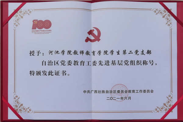 教师教育学院学生第二党支部始终坚持把理论学习作为加强教育、提高素质的重要工作,长抓不懈,努力创建学习型党支部;坚持创新党员教育管理形式,推行公益服务积分制,持续有效加强党支部先进性建设,打造服务型党支部;坚持全面从严治党为引领,以党建带团建促学建,创建优良班风学风。