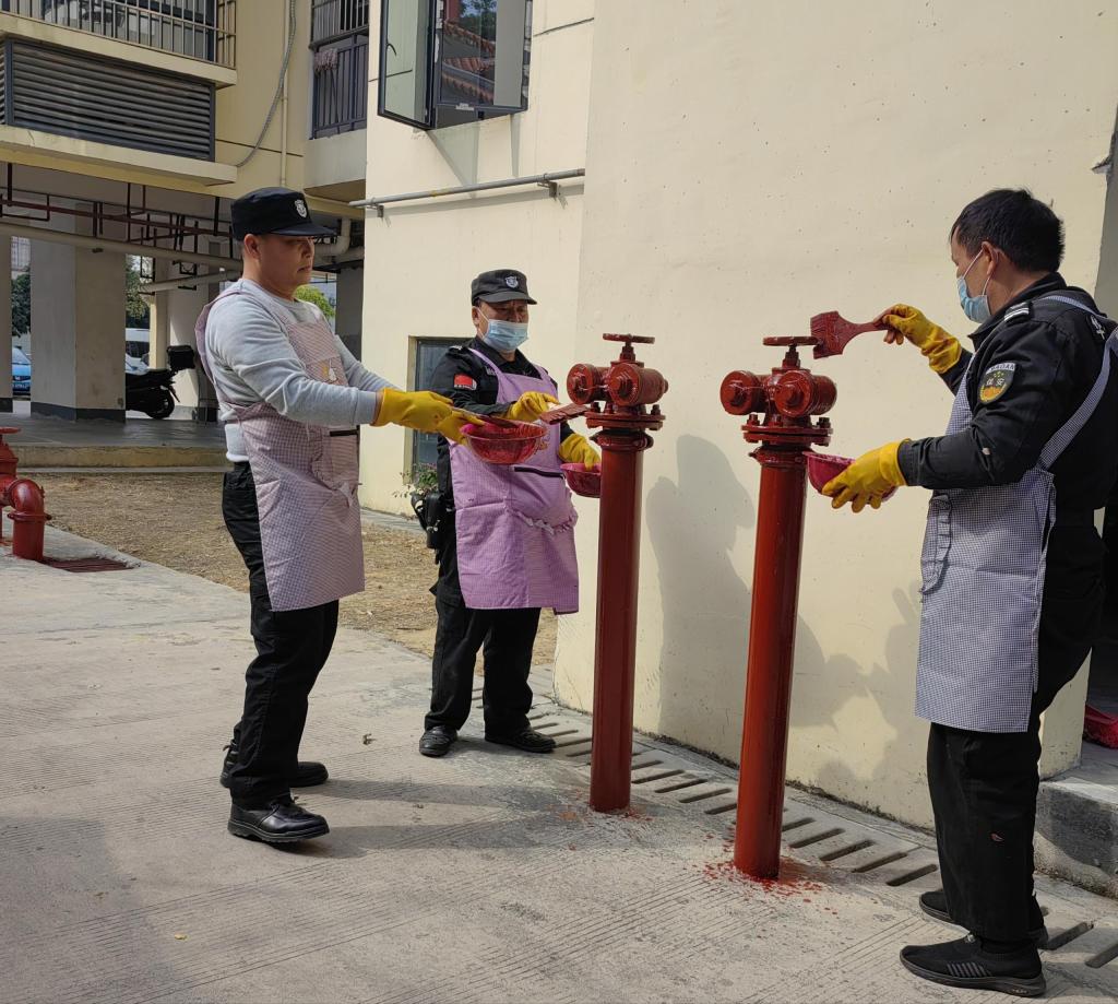 学校保安给校园室外消火栓刷防锈漆(2024-12-24)
