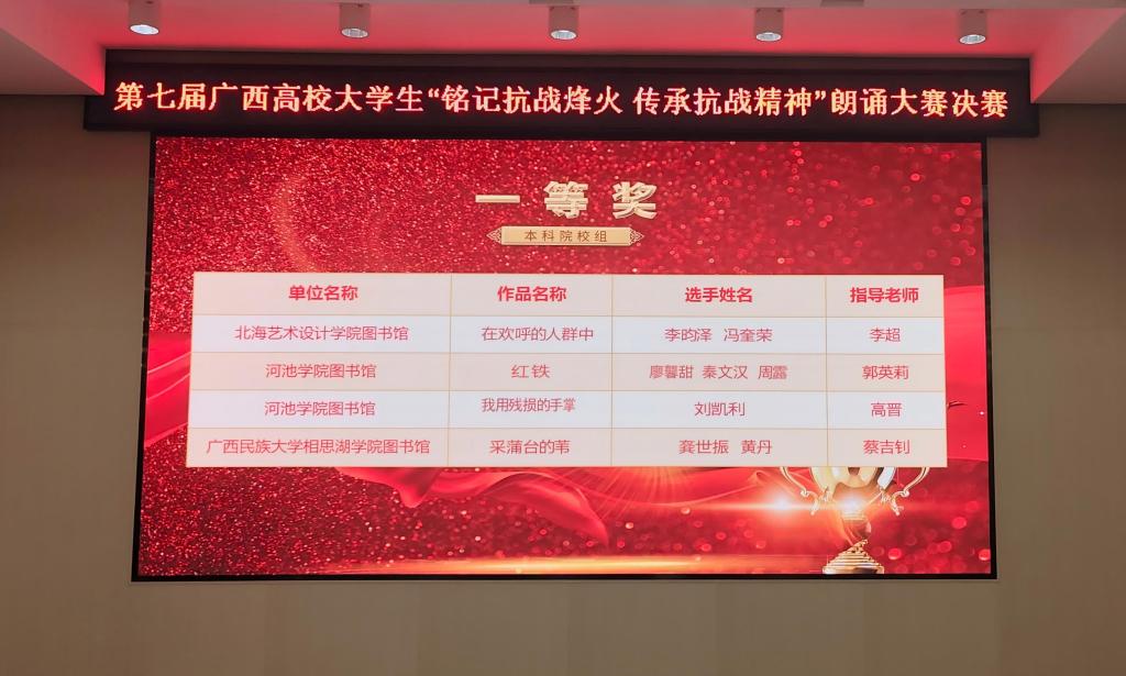 【来源:【喜讯】我院学子在第七届广西高校大学生“铭记抗战烽火 传承抗战精神”朗诵大赛中荣获一等奖 | 发布日期:2025-11-16 】