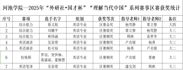 河池学院在2025年“外研社・国才杯”“理解当代中国”系列赛事广西赛区区赛中喜获佳绩
