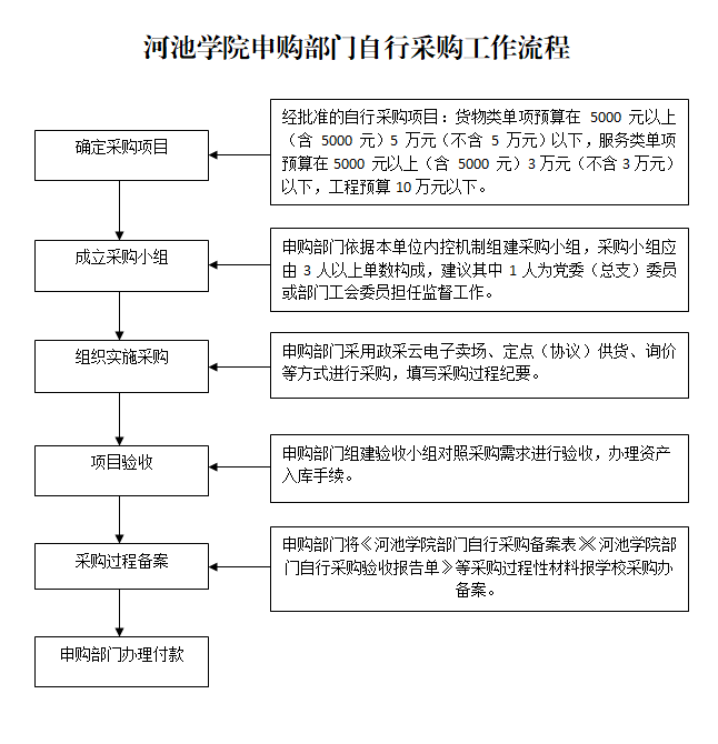 河池学院申购部门自行采购工作流程