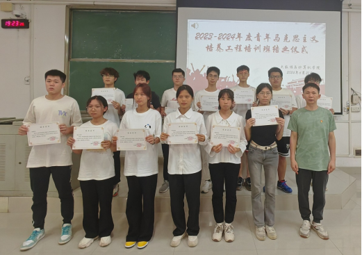 2024年6月21日晚,我院于弘毅楼2-501举行青年马克思主义培训工程培训班结业仪式,学院党委书记钟友坤、副院长(主持行政工作)梁志勋、党委副书记黎军、学院团委书记魏志荣、辅导员蓝消蔓及青马班全体成员参加了结业仪式。