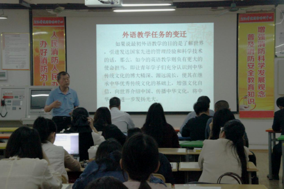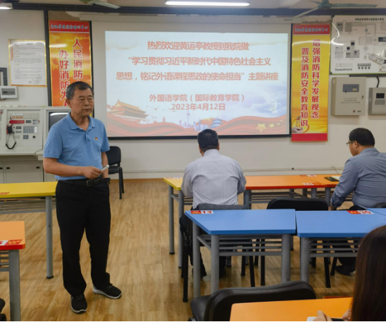 4月12日下午15时,银龄教师黄运亭教授在外语楼205会议室为学院全体教职工做“学习贯彻习近平新时代中国特色社会主义思想,铭记外语课程思政的使命担当”主题讲座,学院党委书记覃春华主持讲座,全院教职工有幸聆听了本次讲座。