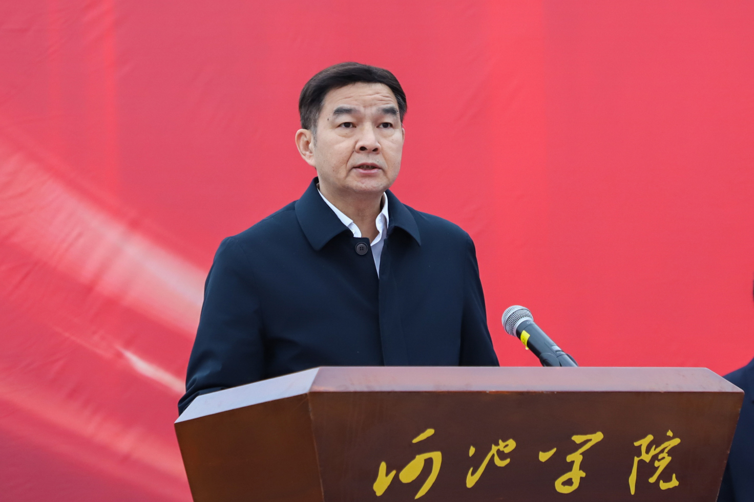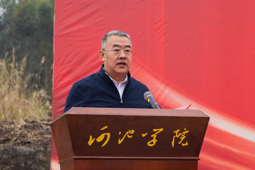 韦安光代表学校全体师生员工,向莅临活动的各位领导、来宾表示热烈欢迎,向所有关心支持帮助我校发展的各级领导、相关单位及全体工作者表示衷心感谢和崇高敬意。他说,河池是著名革命老区,让革命老区人民过上更加富裕幸福的生活,是我们永远不能忘记的历史责任。作为河池唯一一所本科高校,扎根老区办学,为老区培养更多高级专门人才,全面提高学校服务老区经济社会发展和创新驱动发展的能力,是新征程、新发展阶段党和国家赋予我校的神圣使命和历史责任。新校区的建设,必将为学校高质量发展奠定坚实的基础保障。