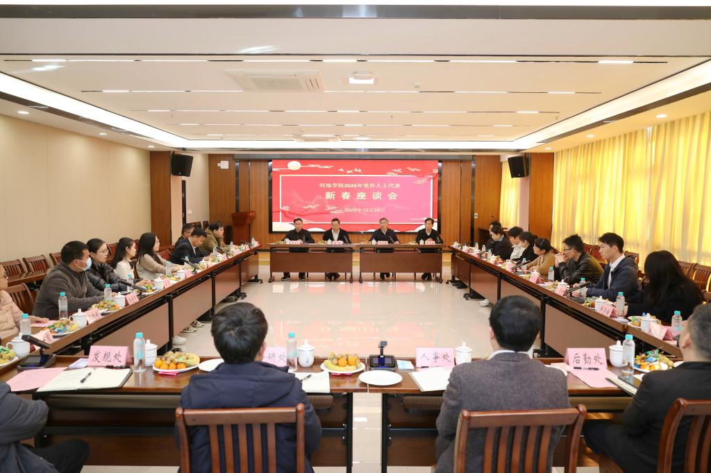 12月25日,我校在致远楼1410会议室召开2026年党外人士代表新春座谈会。学校党委书记甘毅、校长马少健出席座谈会,党委副书记韦文广主持座谈会。学校党委常委、统战部部长罗昌勤,以及相关部门主要负责人,各民主党派、无党派人士、知联会、留联会代表等参加座谈会。