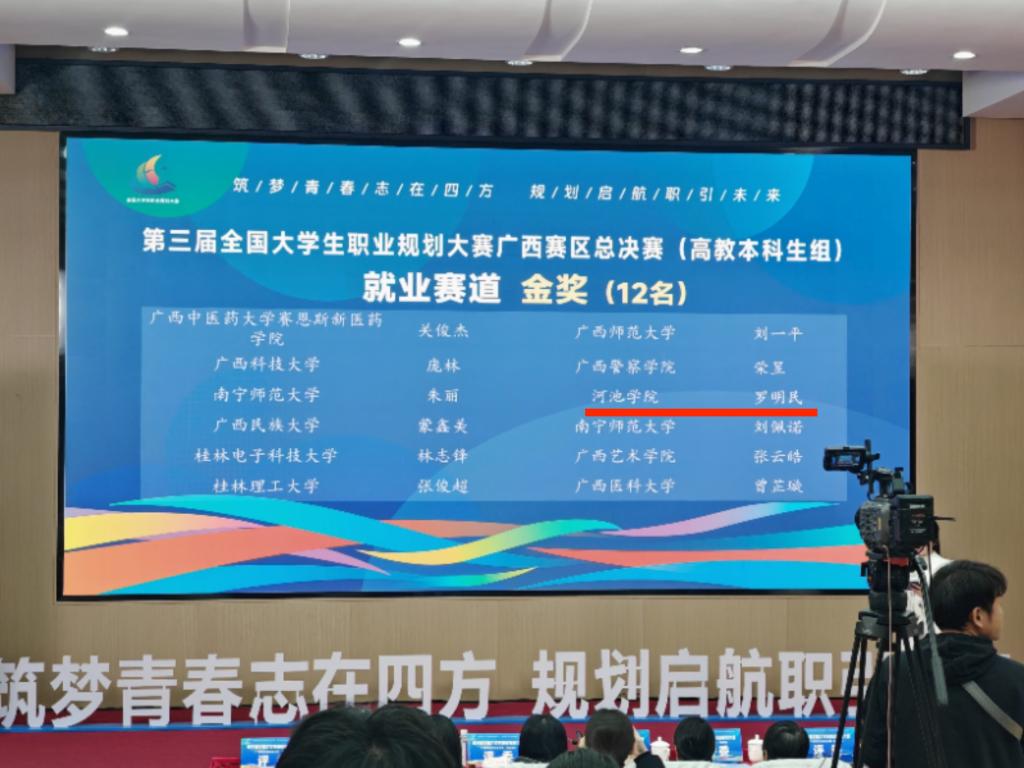 1月12日,自治区教育厅举办的第三届全国大学生职业规划大赛广西赛区颁奖典礼暨就业典型巡回宣讲启动仪式在南宁举行。我校马克思主义学院两名学子表现亮眼,分别荣获金奖和银奖,充分展现了我校学子的职业素养与青春风采。