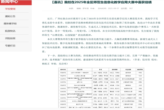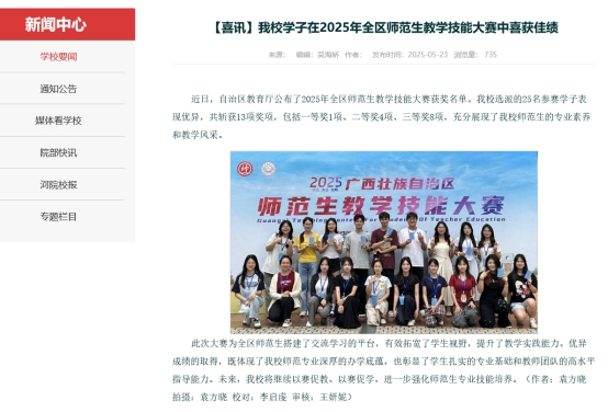 我校学子在2025年全区师范生教学技能大赛中斩获一等奖。