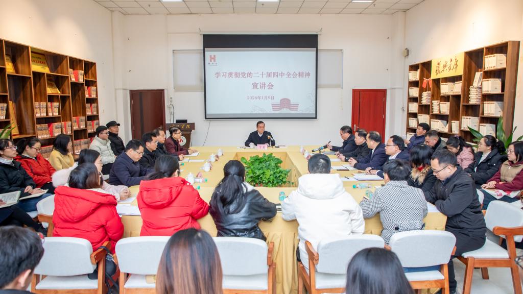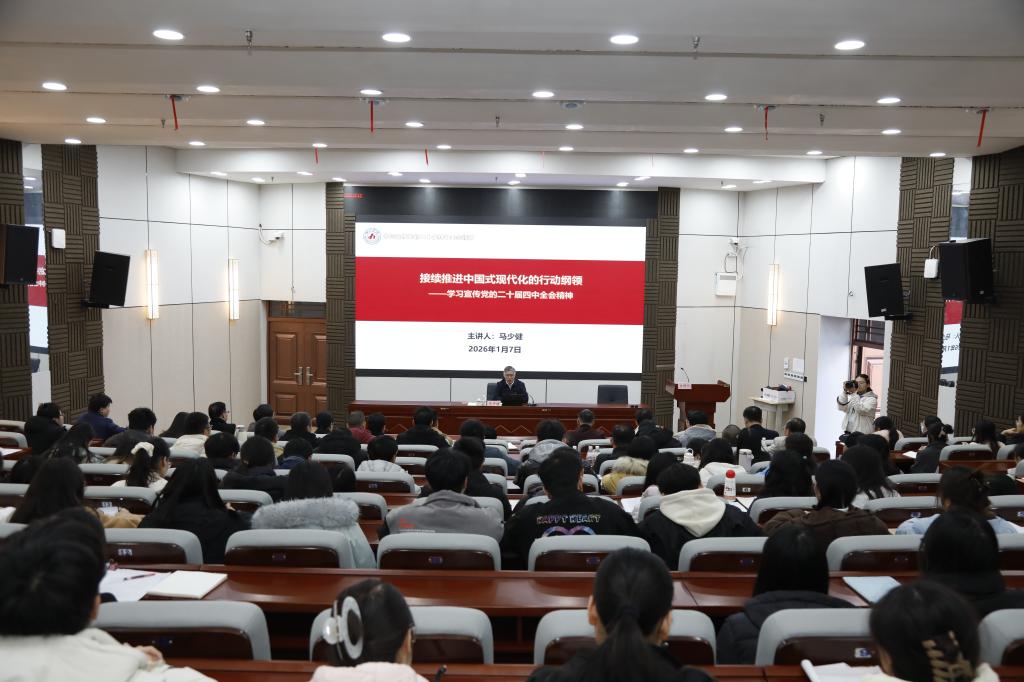 学校党委书记甘毅在马克思主义学院宣讲党的二十届四中全会精神。