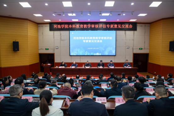 12月10日,河池学院本科教育教学审核评估专家意见交流会召开。