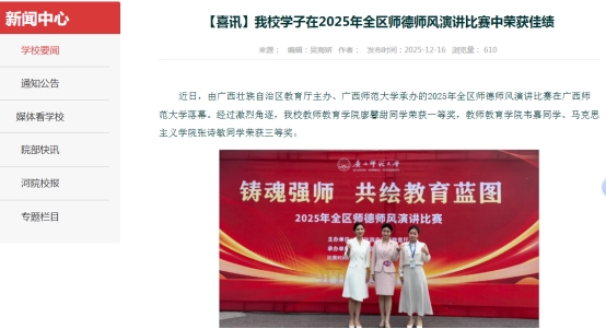 我校学子在2025年全区师德师风演讲比赛中斩获一等奖。