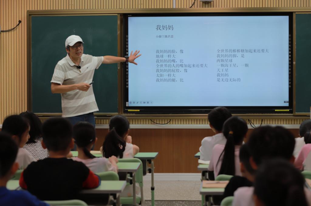 在黄土路的引导下,小学生们展开了一场生动的诗歌创作实践。课堂上,他们积极投入创作,多位同学主动登台朗诵原创作品。这些作品虽略显稚嫩,却充满童真,生动表现了其对生活的细腻观察和独特思考。活动现场气氛活跃,精彩的创作与朗诵引发阵阵掌声,赢得了老师和同学们的认可。(作者:张燕婷、方宋娜 拍摄:全瑰、零金秋 校对:王立红 审核:欧阳珍)