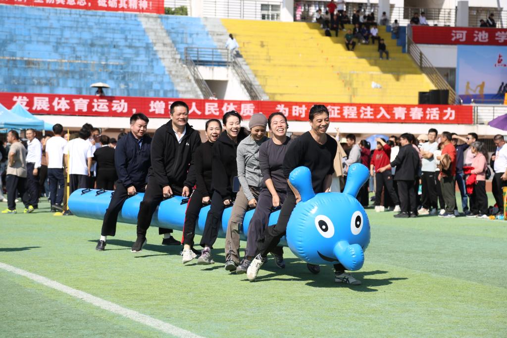 11月15日,我校2025年“趣味运动享欢乐,团结协作展风采”教职工趣味运动会在东区田径场和校友球馆举行。运动会由学校工会主办、体育学院协办,各二级工会积极组队参与。