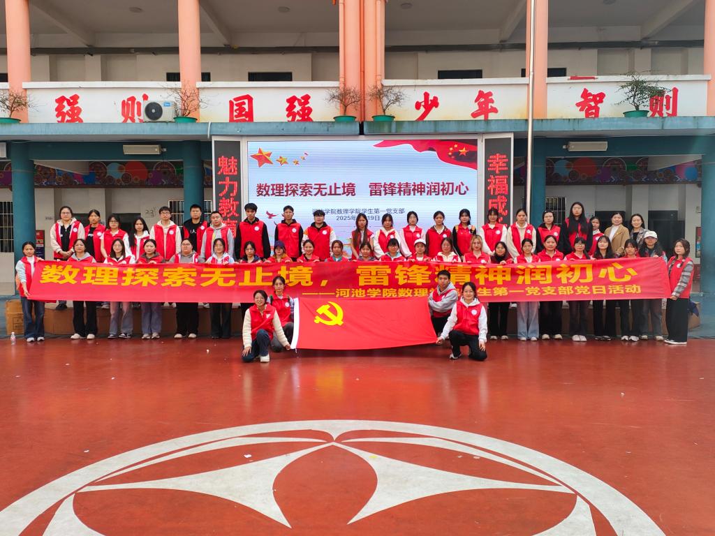 3月19日下午,河池学院数理学院学生第一党支部走进河池市宜州区第一小学(龙降校区),成功开展“数理探索无止境,雷锋精神润初心”主题志愿活动。在党支部书记姚宁的带领下,支部全体党员和入党积极分子积极参与,以实际行动践行党的二十届三中全会精神,将雷锋精神融入教育教学实践,为推进学风建设注入新动能。