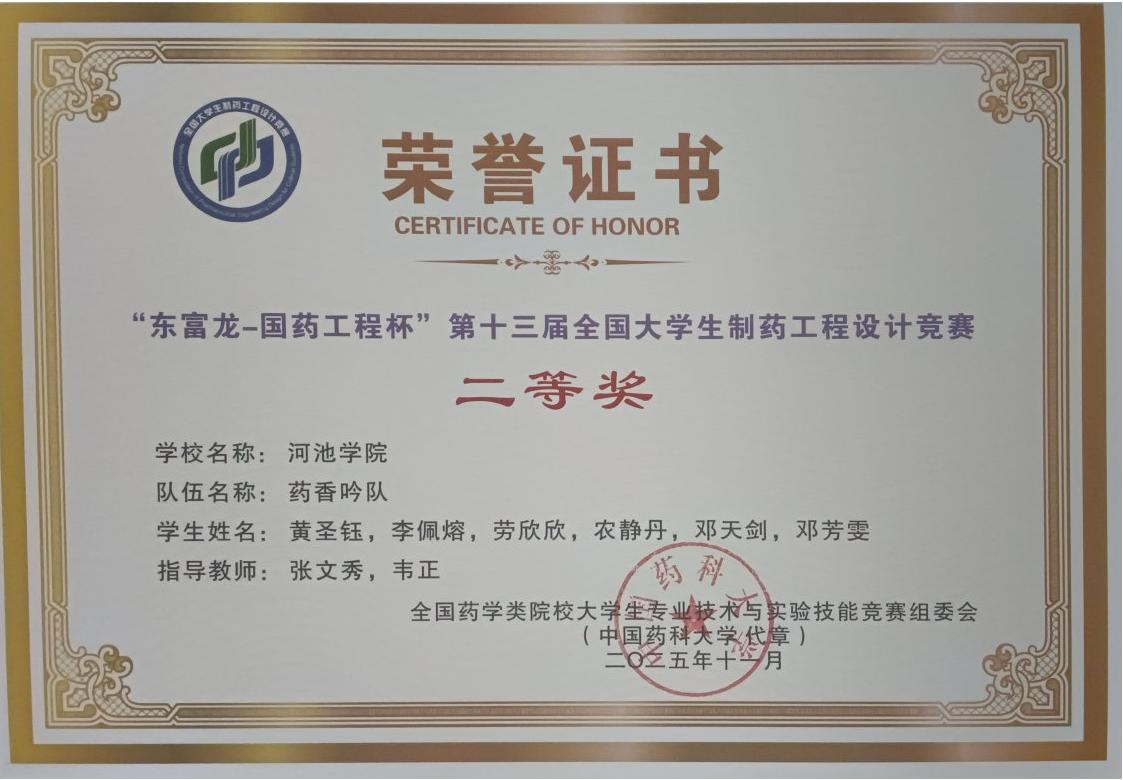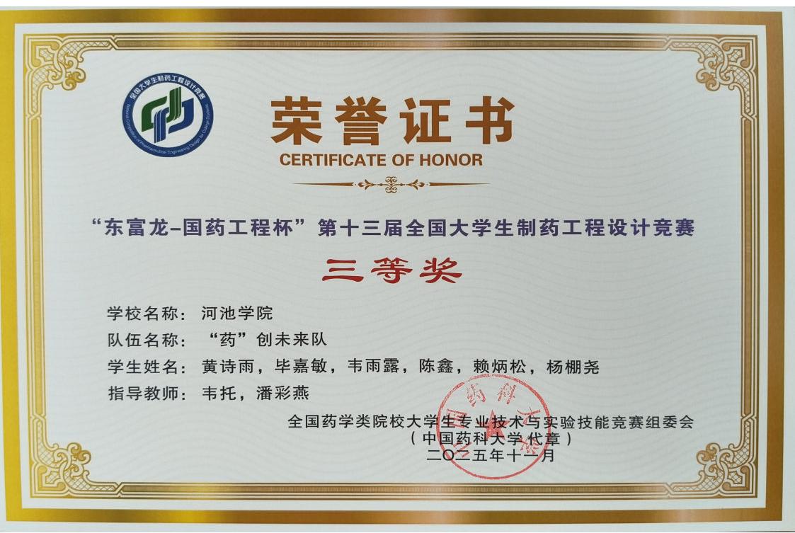 【喜讯】我院学子在第十三届全国大学生制药工程设计竞赛中喜获佳绩