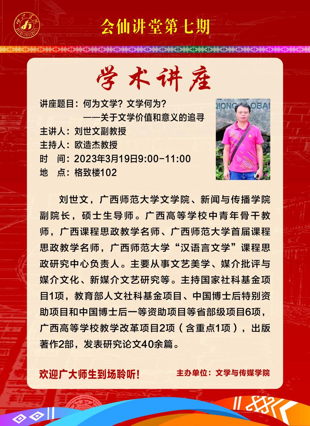 【会仙讲堂】学术讲座:何为文学?文学何为?——关于文学价值和意义的追寻