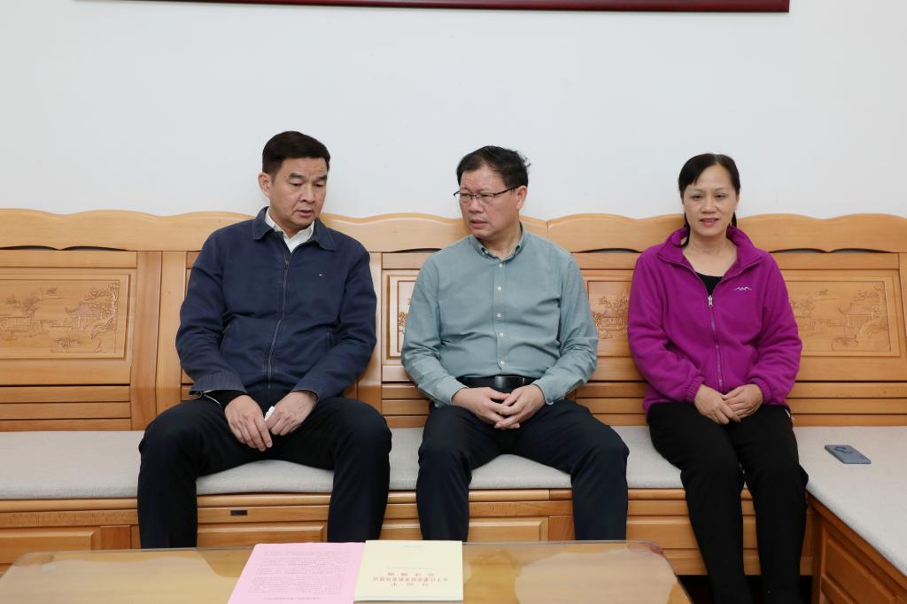 韦安光(左一)到学校党委常委、副校长韦文广家中开展廉政家访。