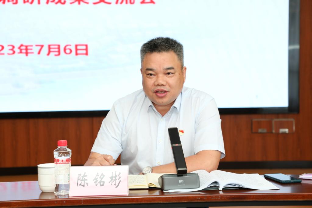 7月6日上午,我校在实训楼1410会议室召开学习贯彻习近平新时代中国特色社会主义思想主题教育调研成果交流会,学校党委书记韦安光主持会议。自治区党委第十四巡回指导组副组长、广西民族大学党委副书记、宣传部部长陈铭彬到会指导。