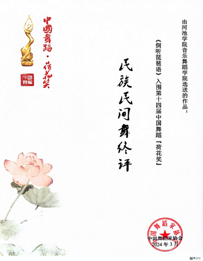 原创舞蹈《侗听琵琶语》获第十四届中国舞蹈“荷花奖”民族民间舞终评作品入围奖